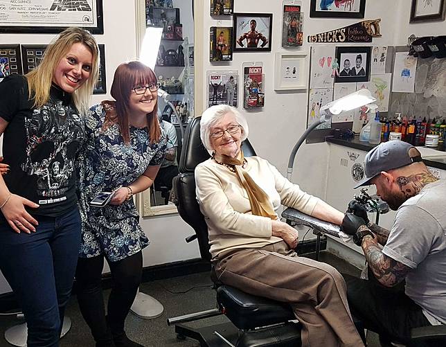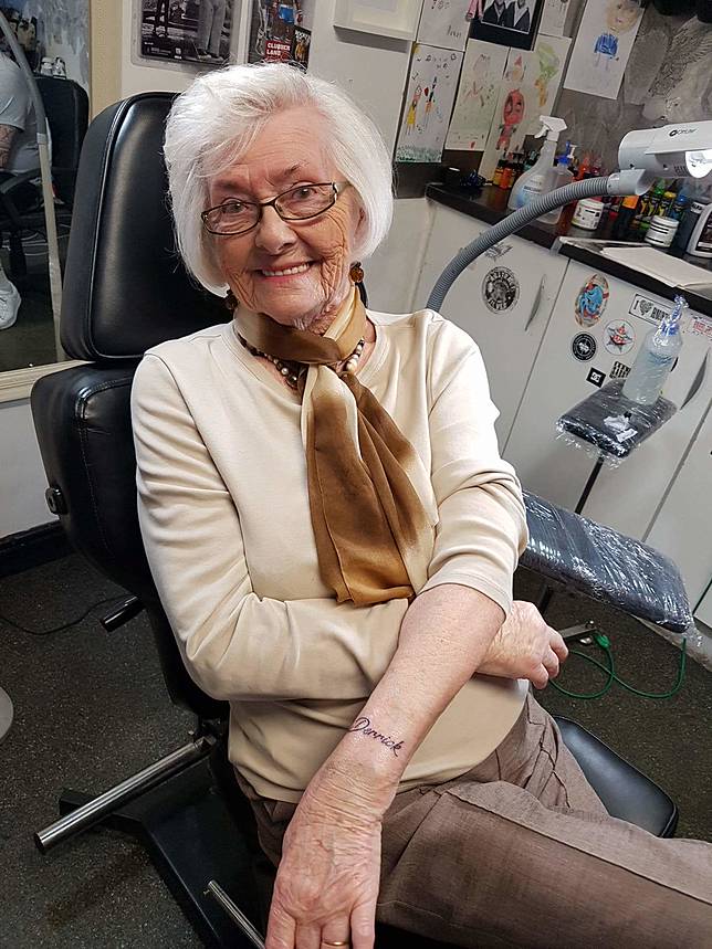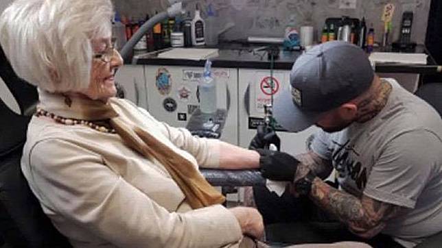 WorldHobi- Tak pernah ada kata terlambat untuk melakukan suatu perubahan dalam diri.Seorang wanita membuktikan perkataan ini dengan mendapatkan tato pertamanya di usia 82 tahun.Tato ini bertuliskan nama almarhum suaminya.